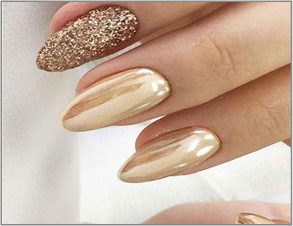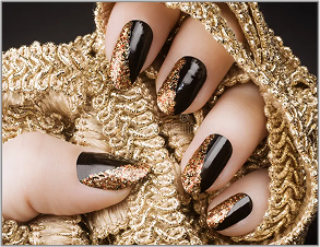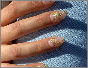 Nails with embedded designs or art sealed within the nail for glassy finish.